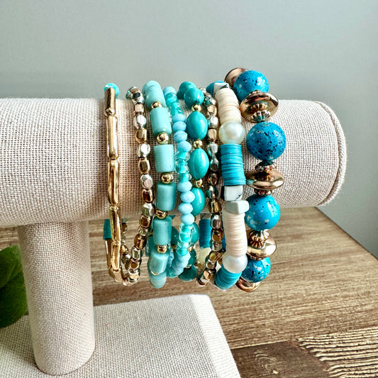 Bracelet Assorted Ball Beaded Stackable Set - Teal