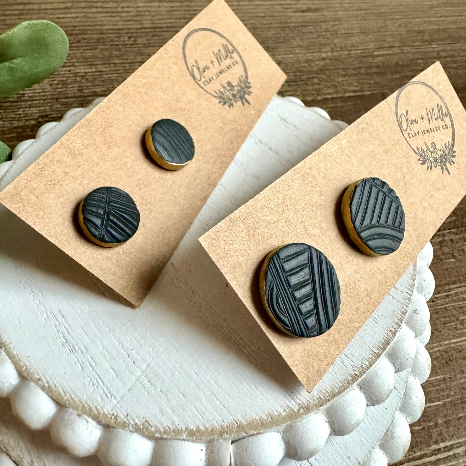 The jewelry by Olive and Millie is handcrafted with polymer clay and must be handled with care. Do not bend the jewelry, place anything heavy on top of the items, or place in a loose jewelry bag without wrapping the items. When traveling store items in a jewelry box for protection.