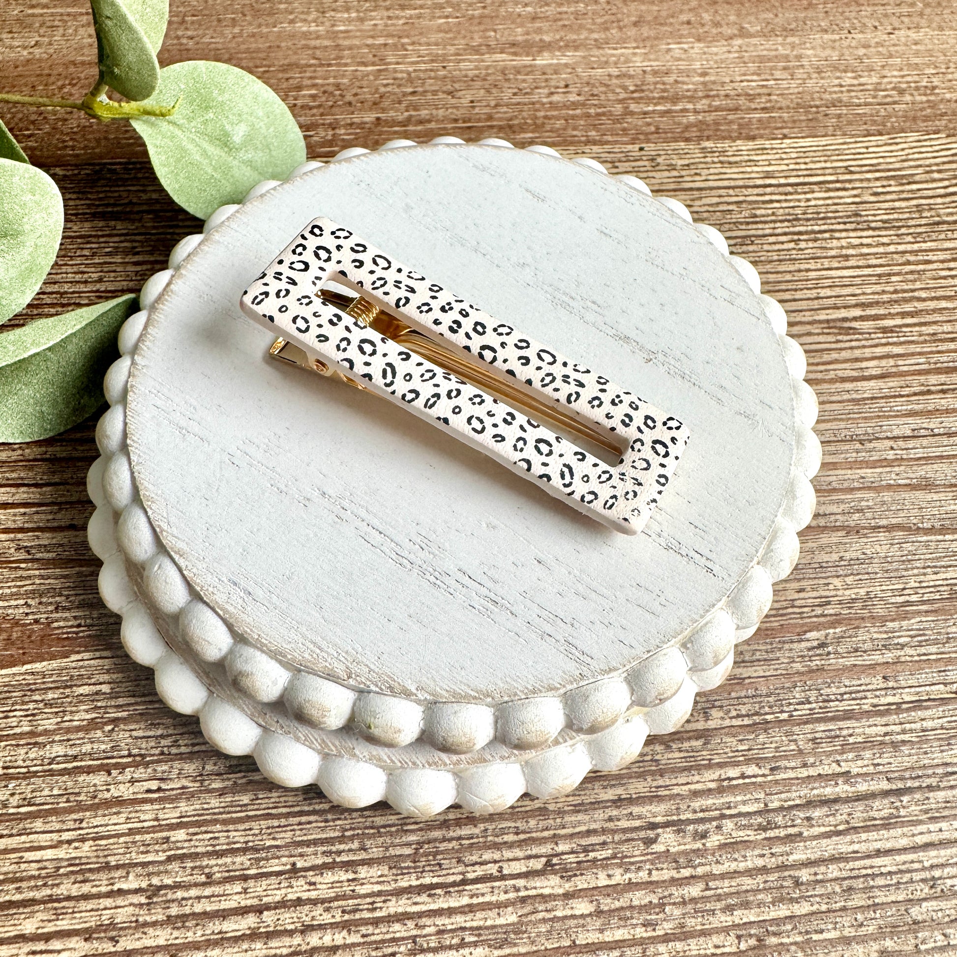 The accessories by Olive and Millie are handcrafted with polymer clay and must be handled with care. Metal barrette is gold in color.