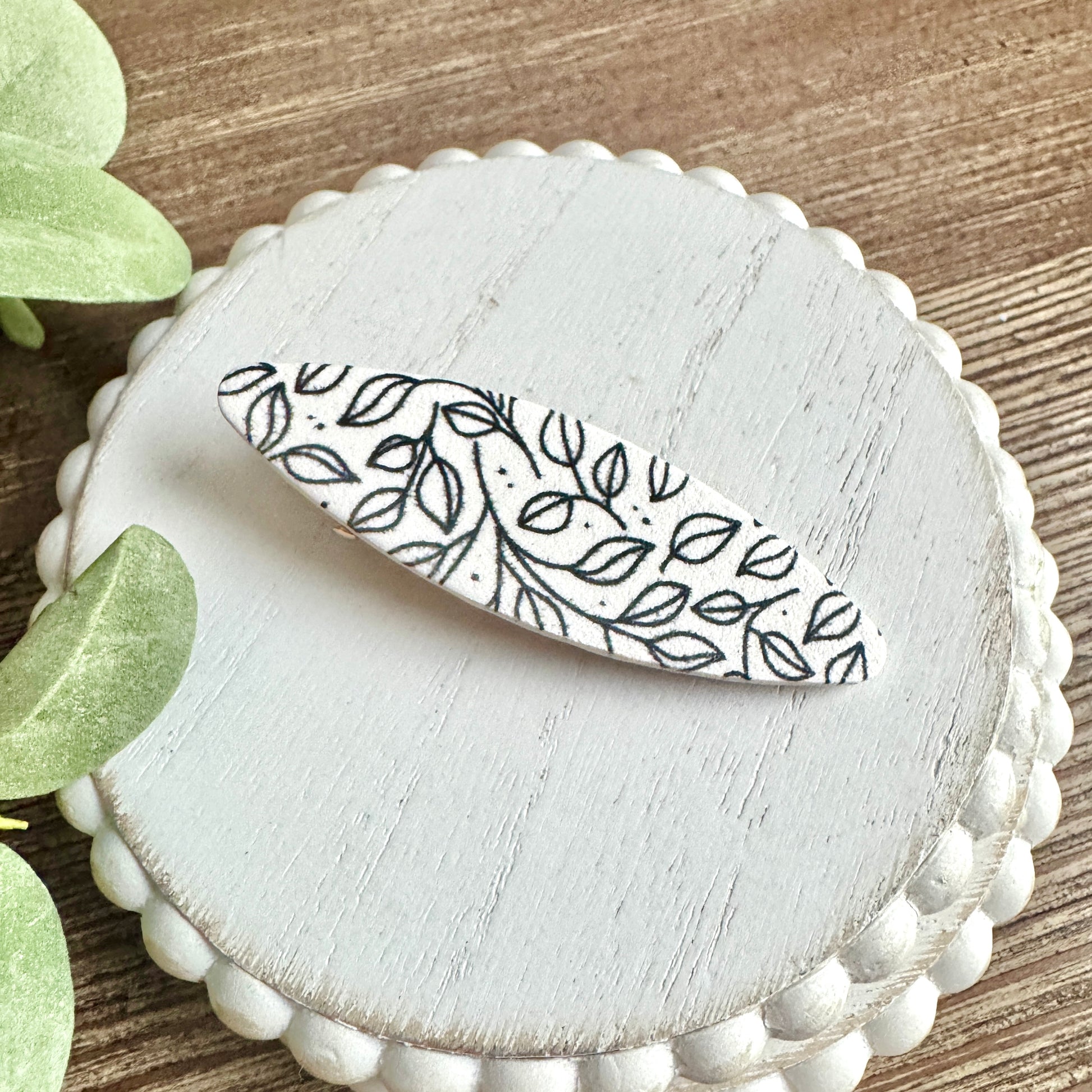 The accessories by Olive and Millie are handcrafted with polymer clay and must be handled with care. Metal barrette is gold in color.