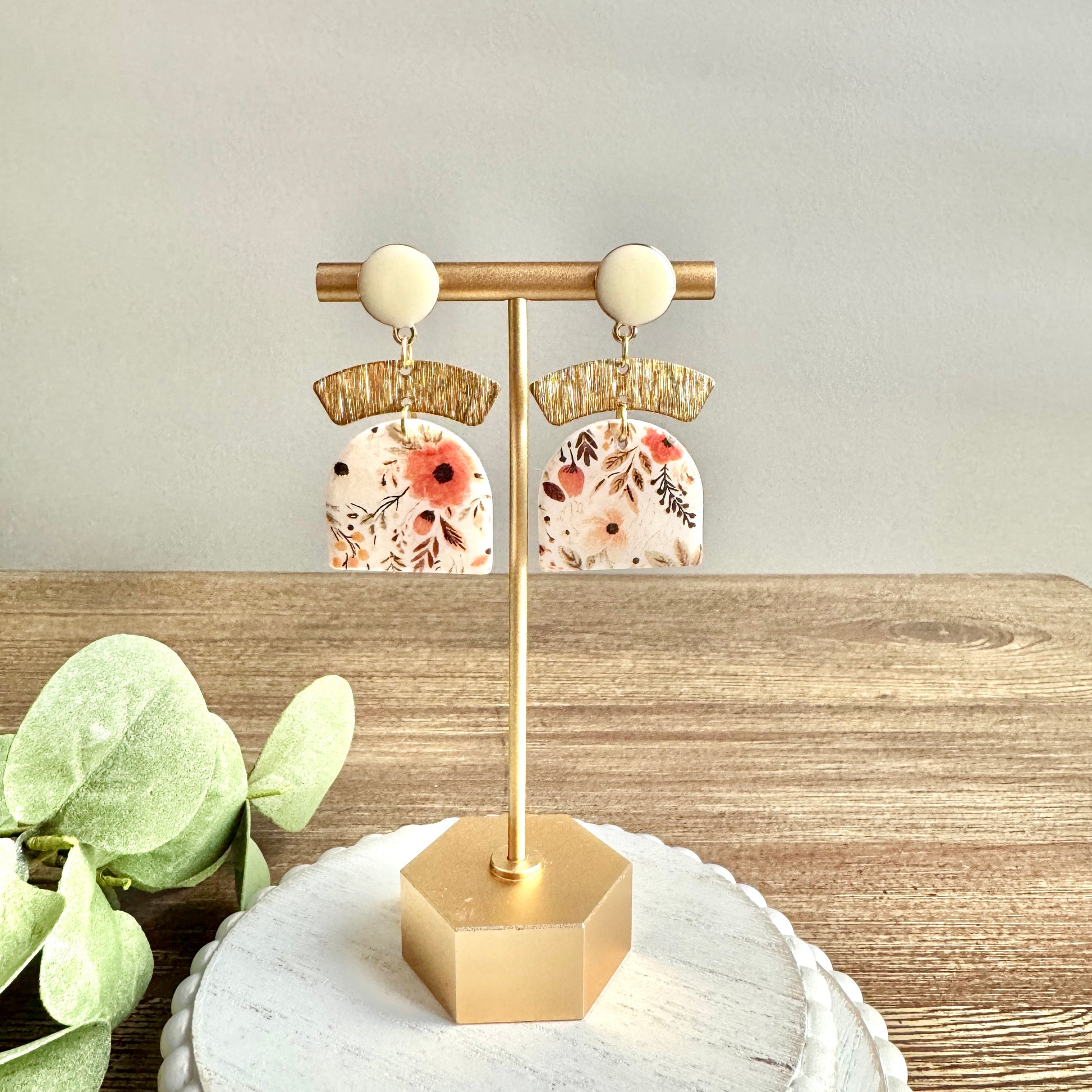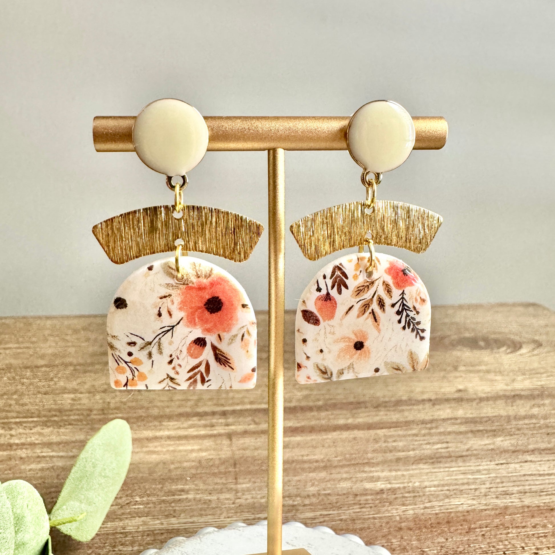 Earring posts are 18K gold plated with a base material of surgical steel. Polymer Clay is very lightweight so the earrings are not heavy on your ears.