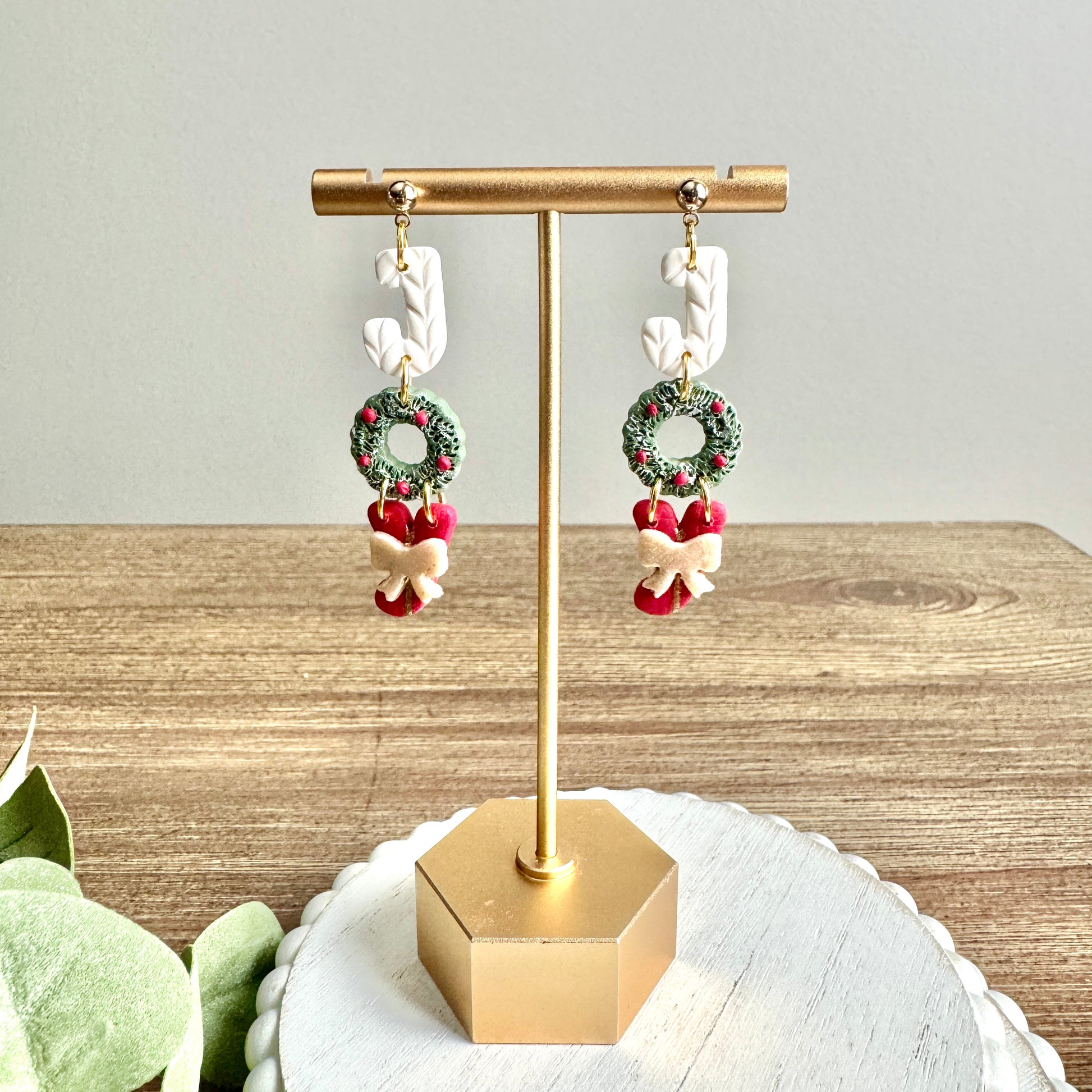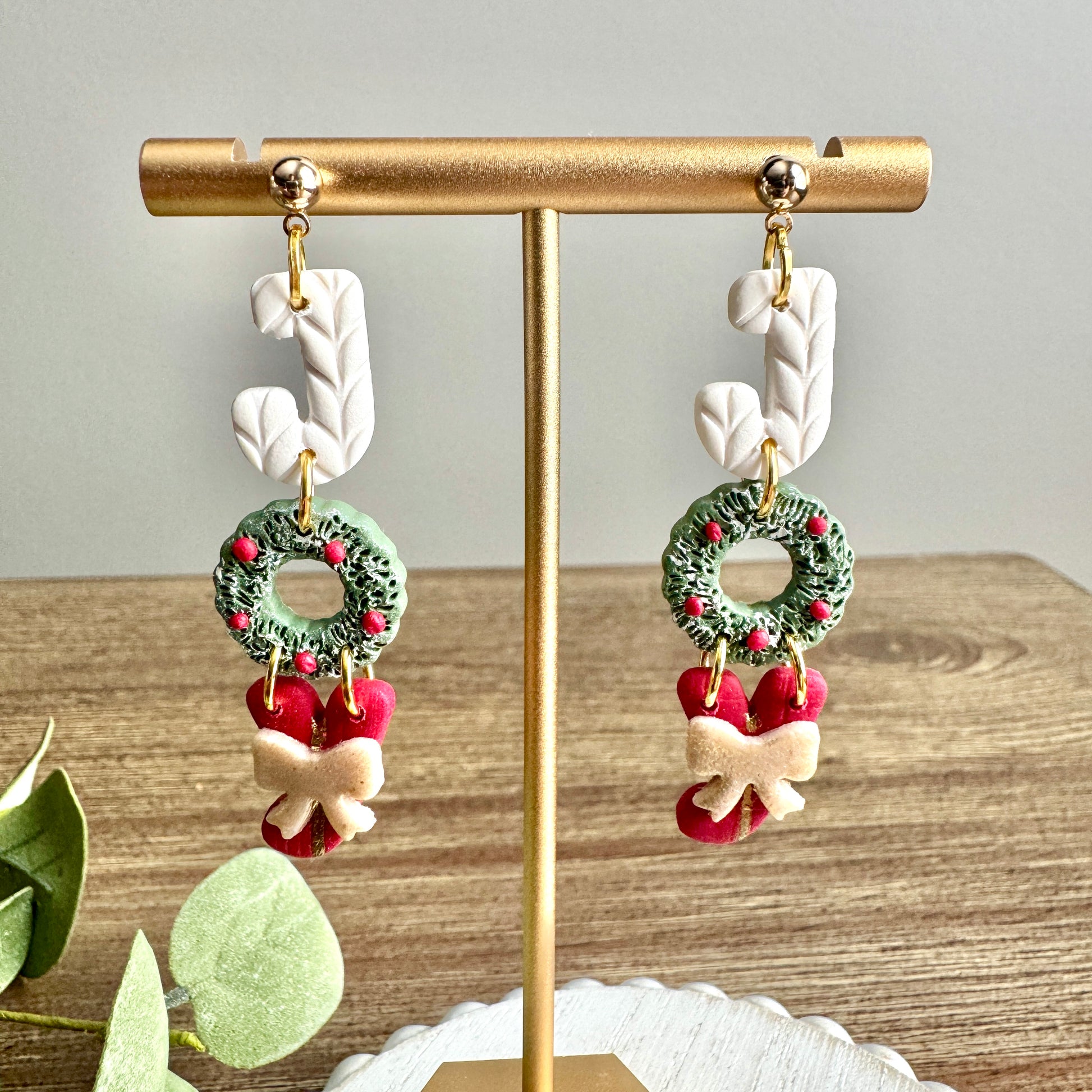 Earrings are handcrafted and are made to be sisters not twins. Earring posts are plated gold with a base material of brass. Polymer Clay is very lightweight so the earrings are not heavy on your ears.