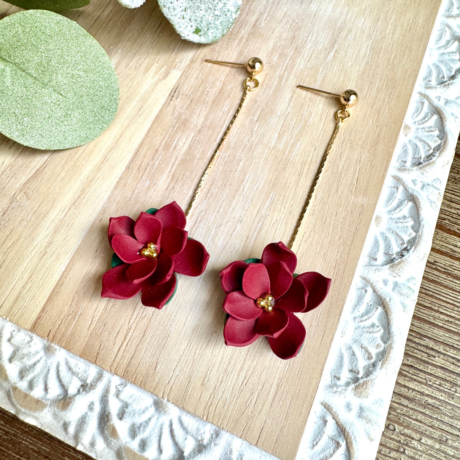 Polymer Clay Handmade Earrings with 18k Gold Plated Ball Posts and Chain