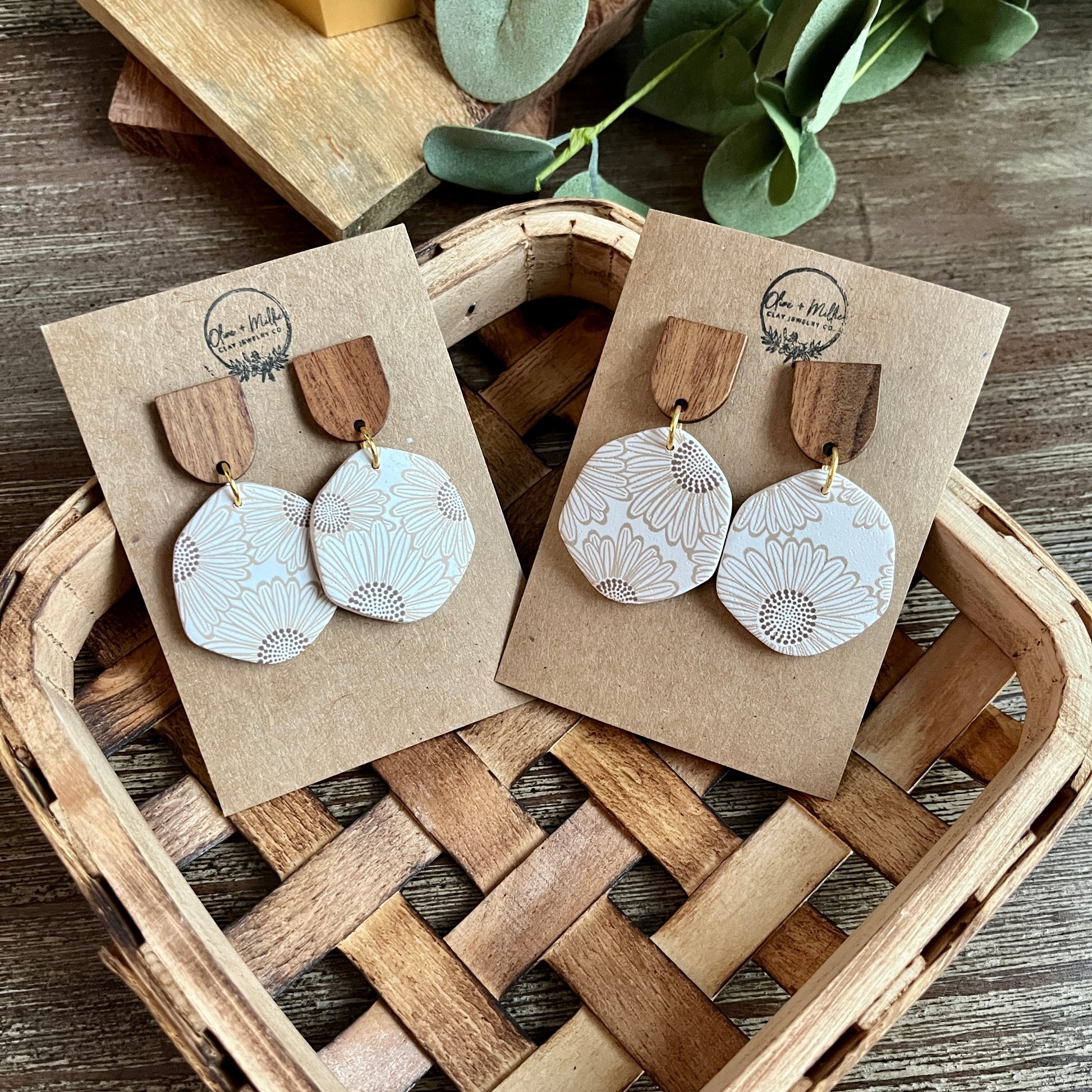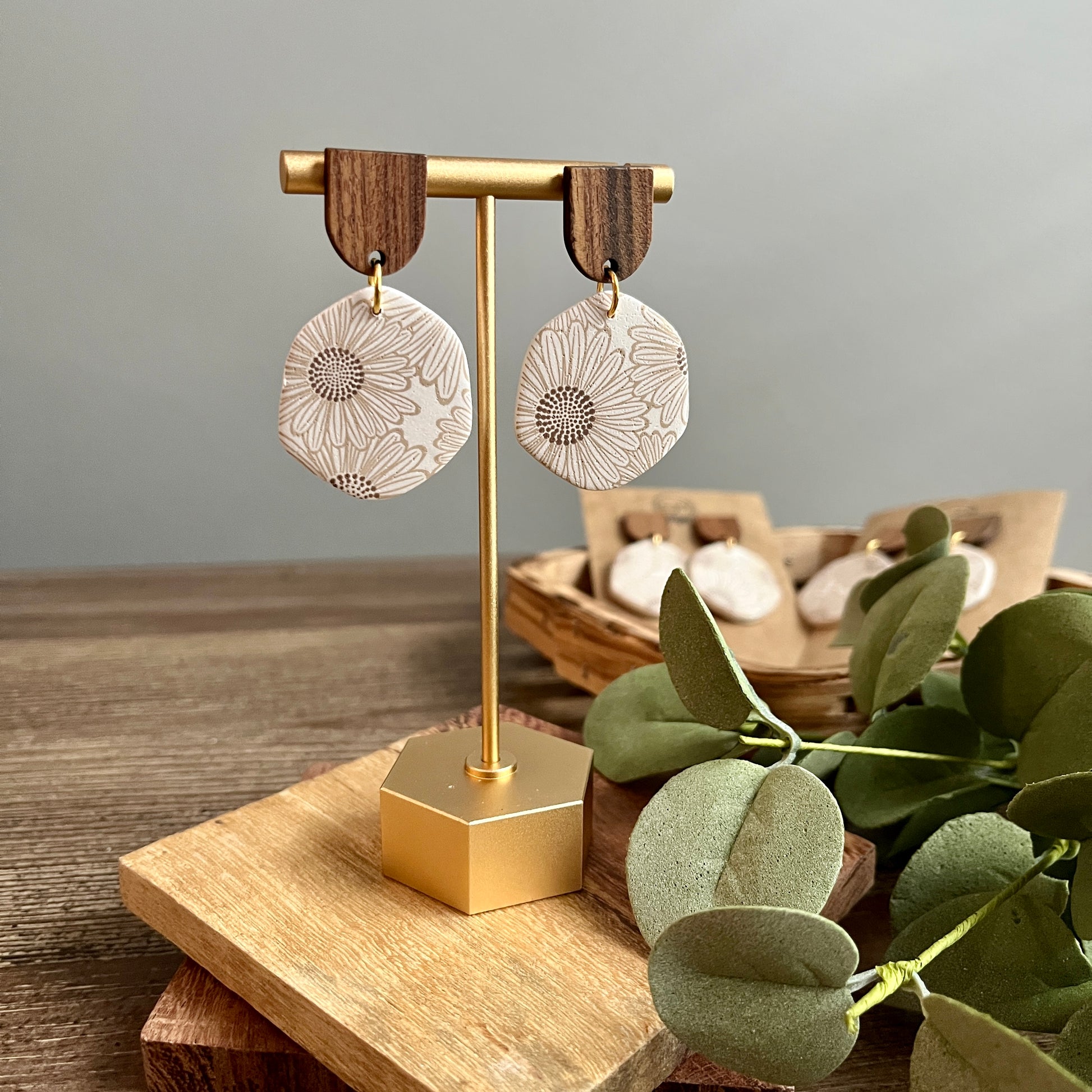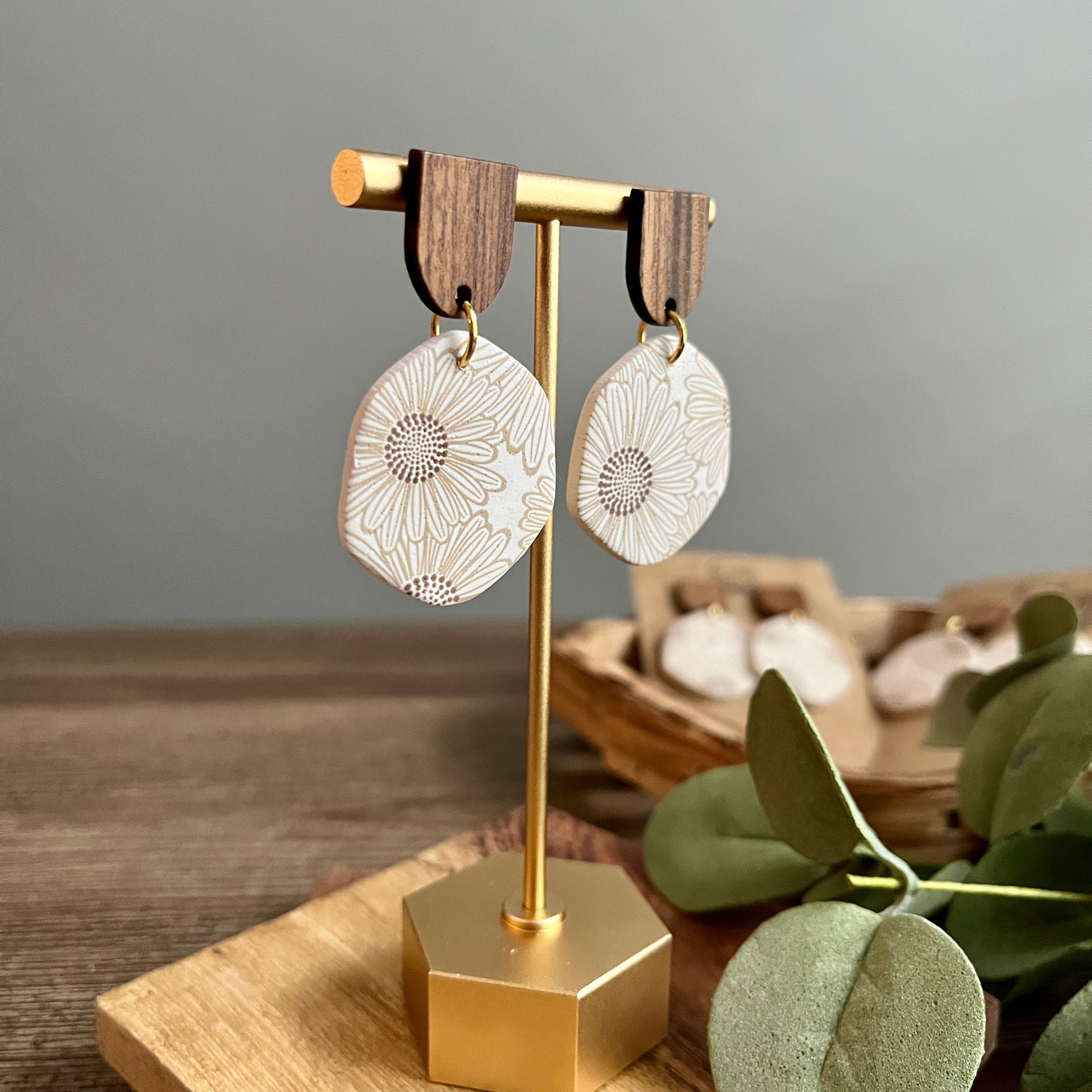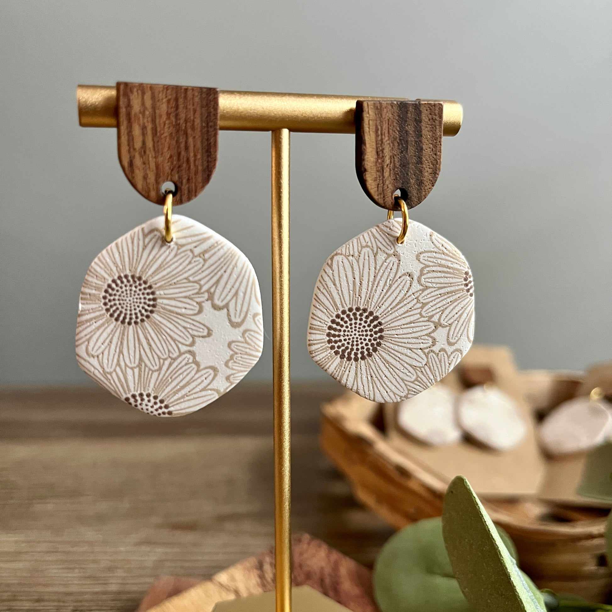 Polymer Clay Handmade Earrings with Wood Posts