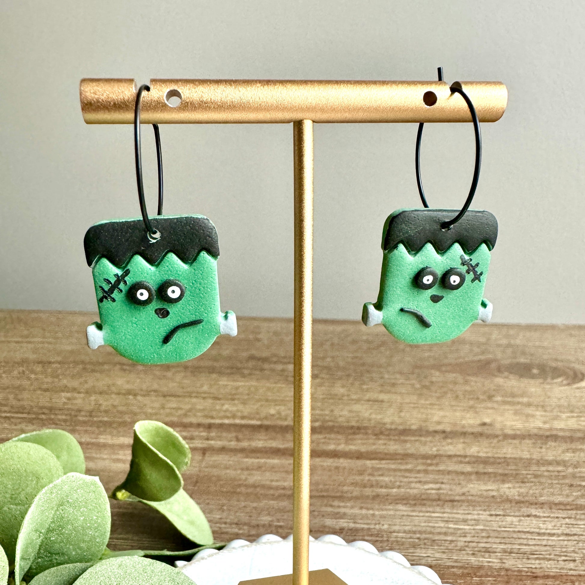 Polymer Clay Handmade Earrings with Black plated Hoops
