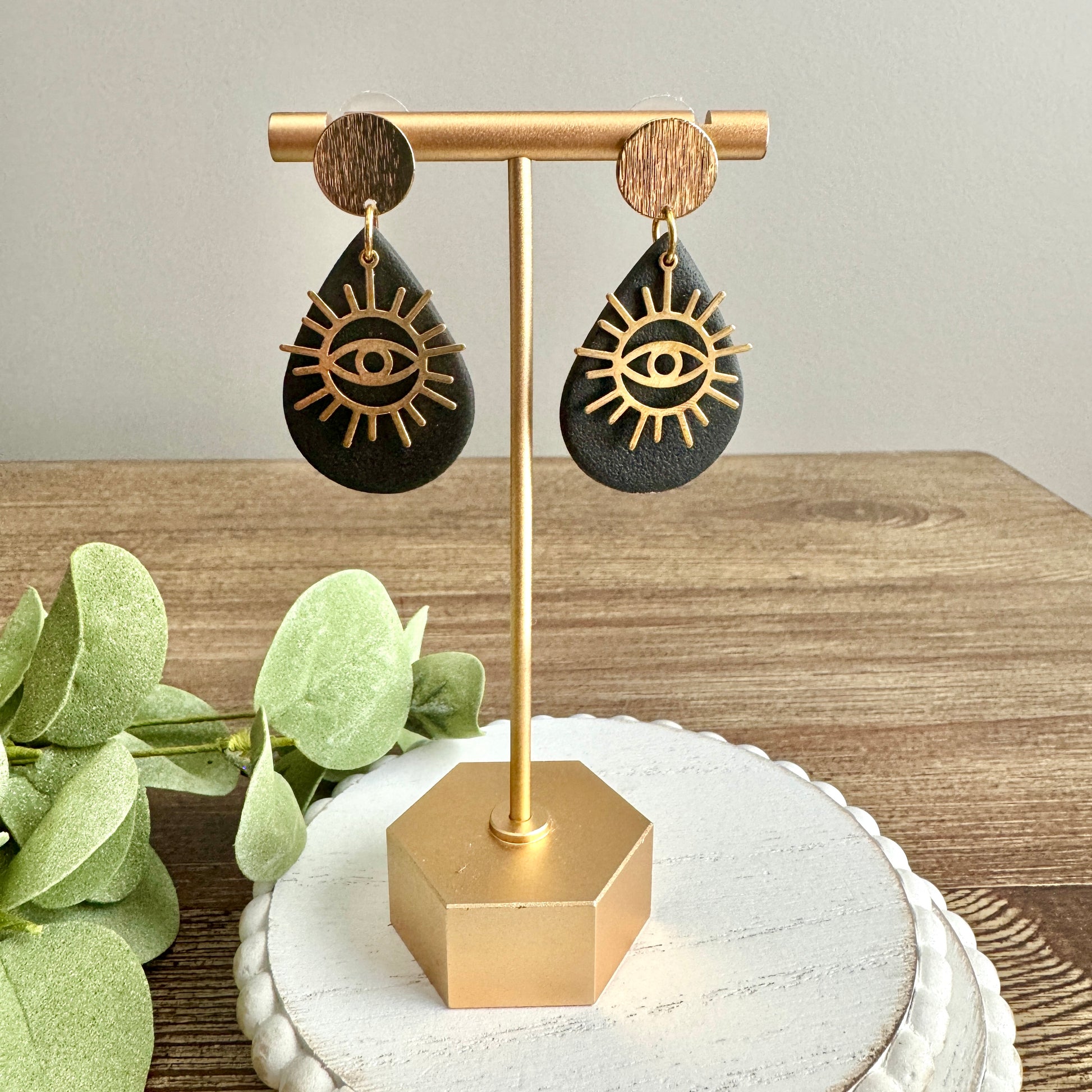 Earrings are handcrafted and are made to be sisters not twins. Earring posts are gold plated brass. Charms are Brass. The card they are shown on is 3.5" x 2.5" wide to give you an idea on size. Polymer Clay is very lightweight so the earrings are not heavy on your ears.