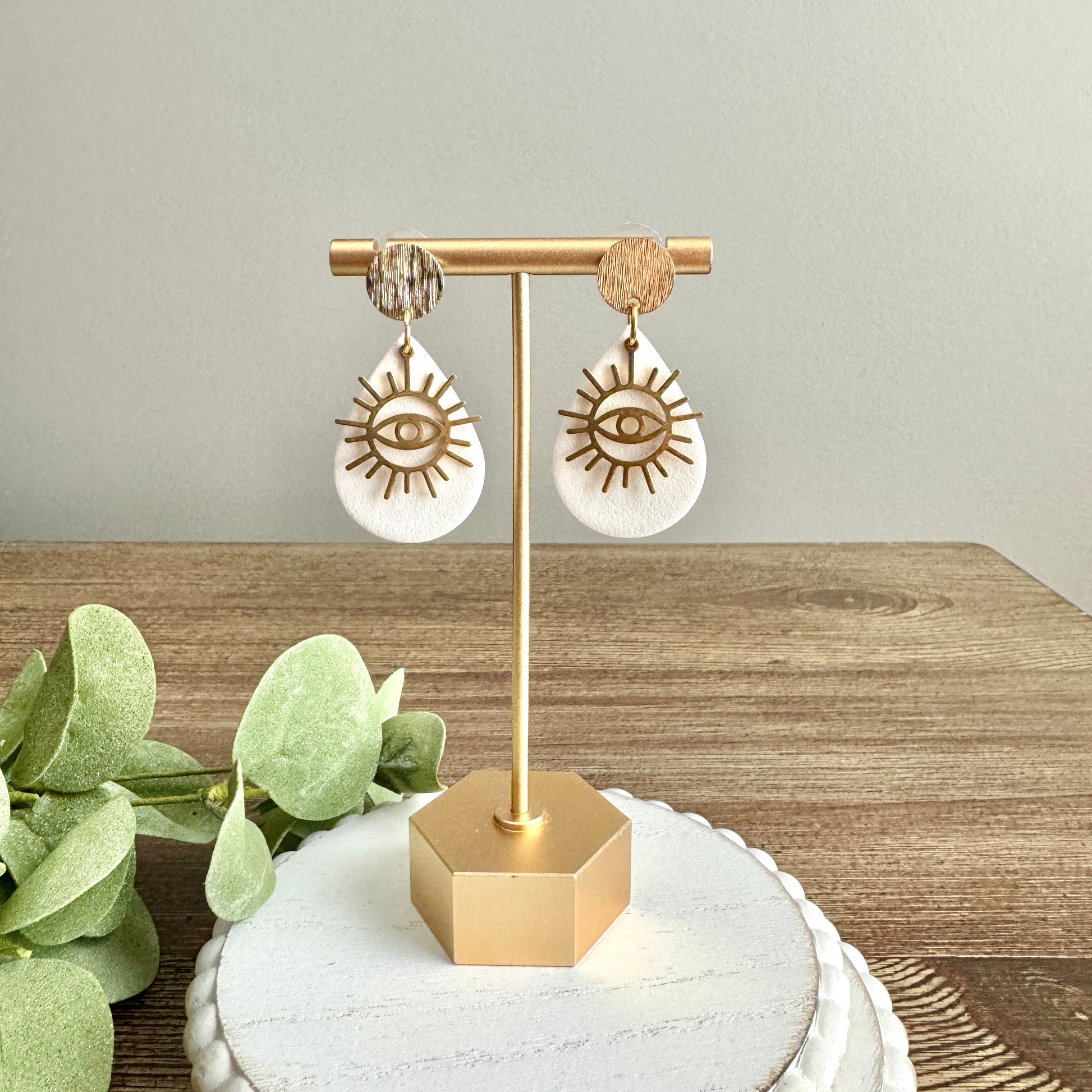 Earrings are handcrafted and are made to be sisters not twins. Earring posts are gold plated brass. Charms are Brass. The card they are shown on is 3.5" x 2.5" wide to give you an idea on size. Polymer Clay is very lightweight so the earrings are not heavy on your ears.