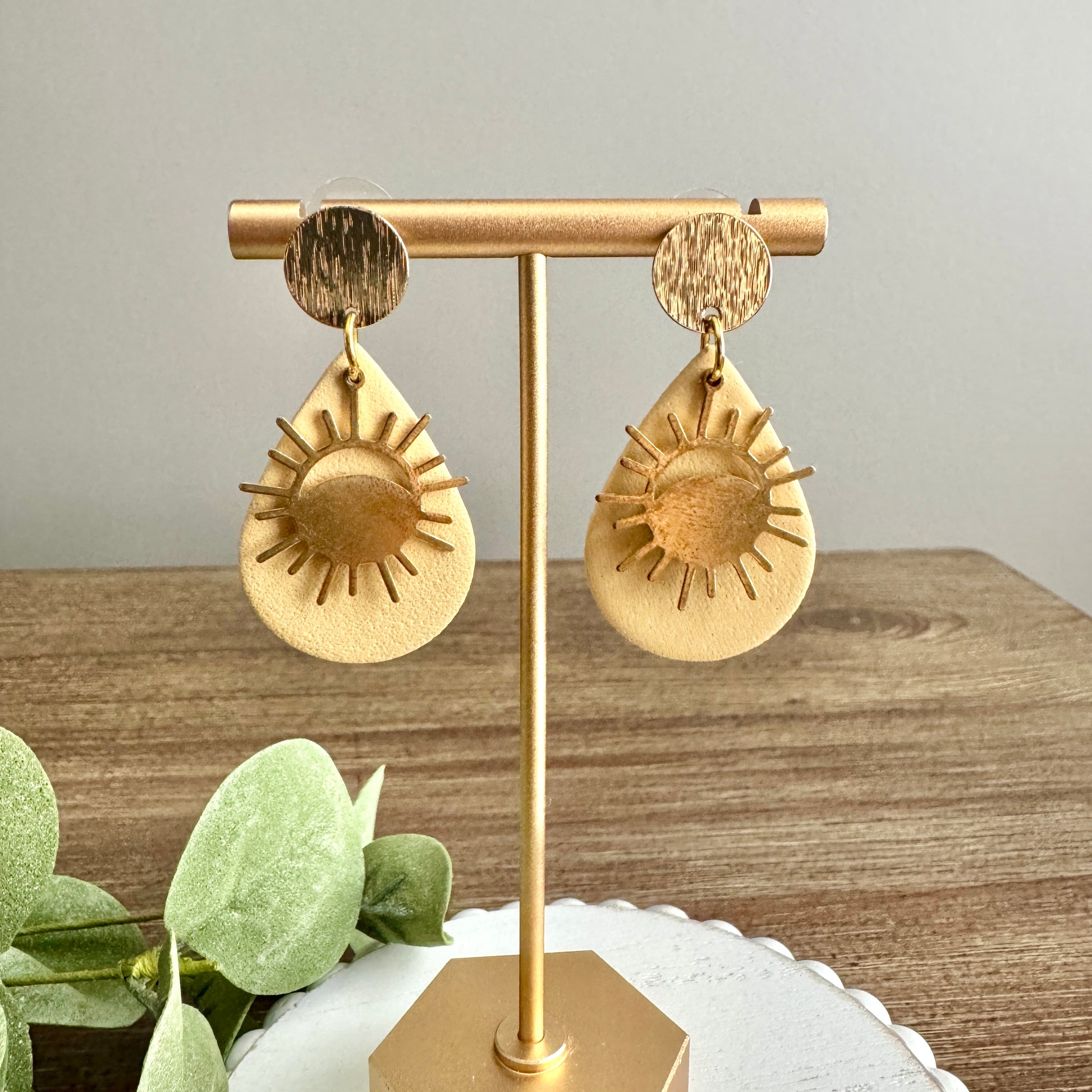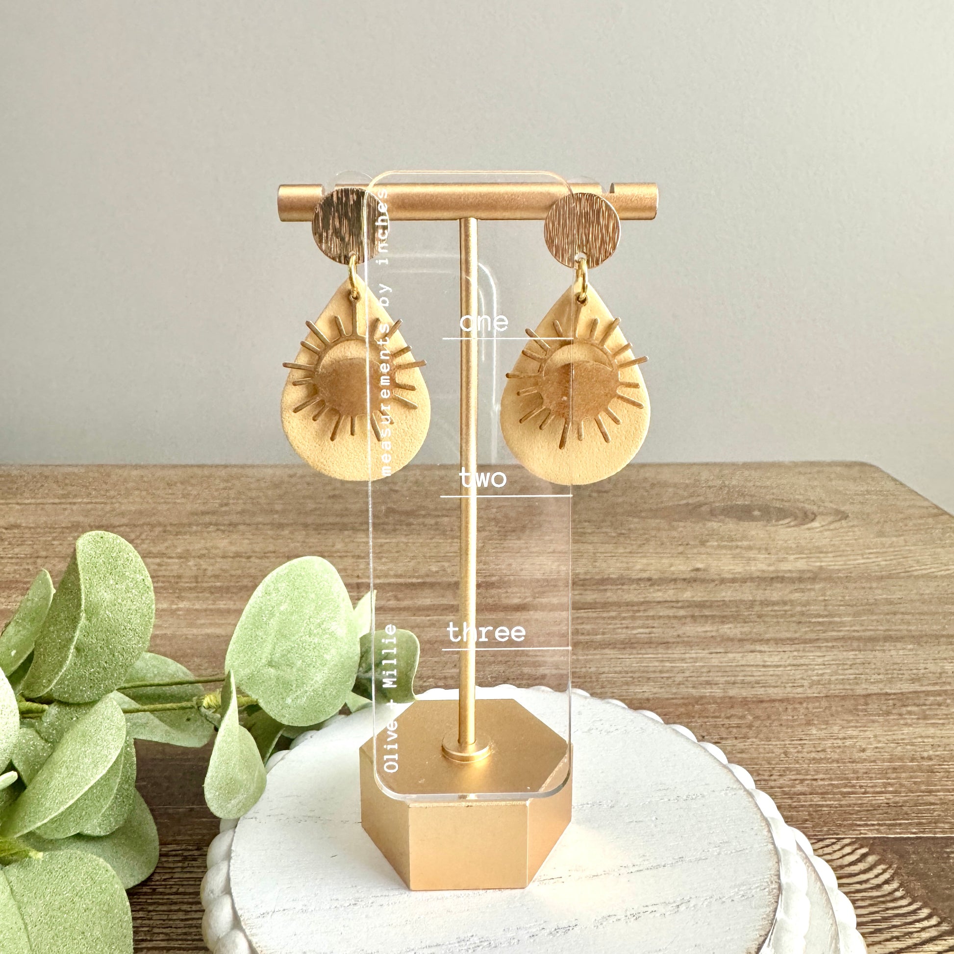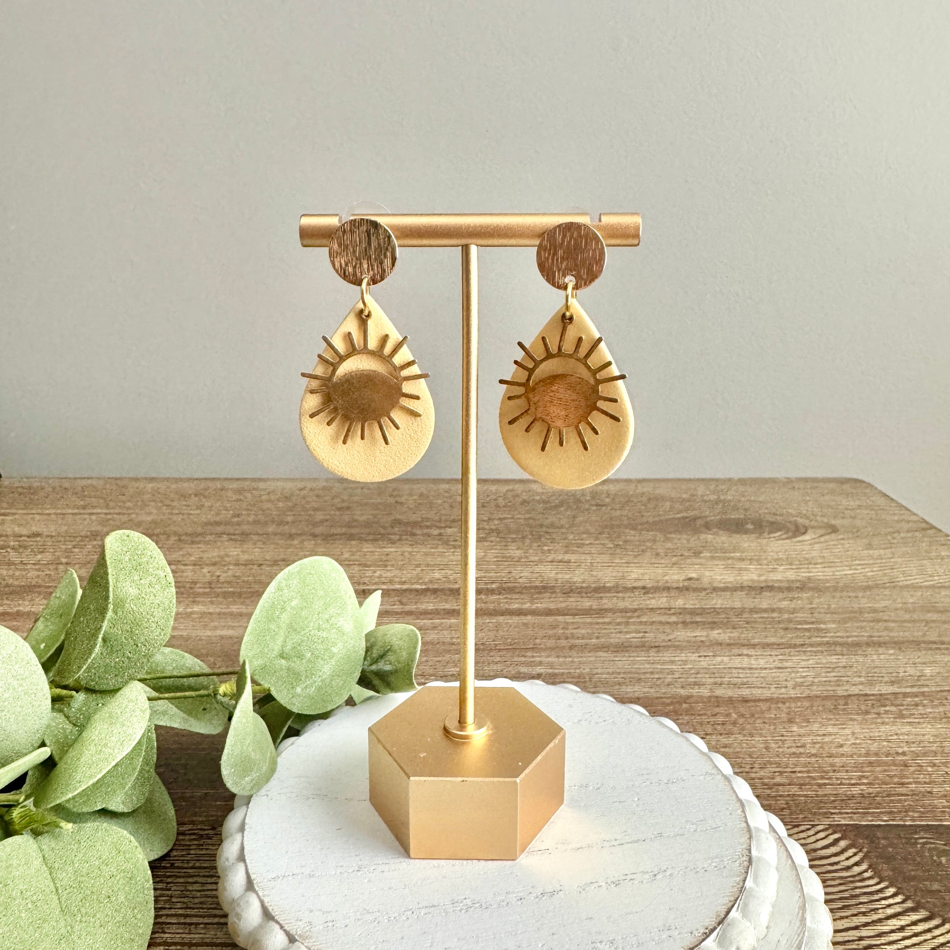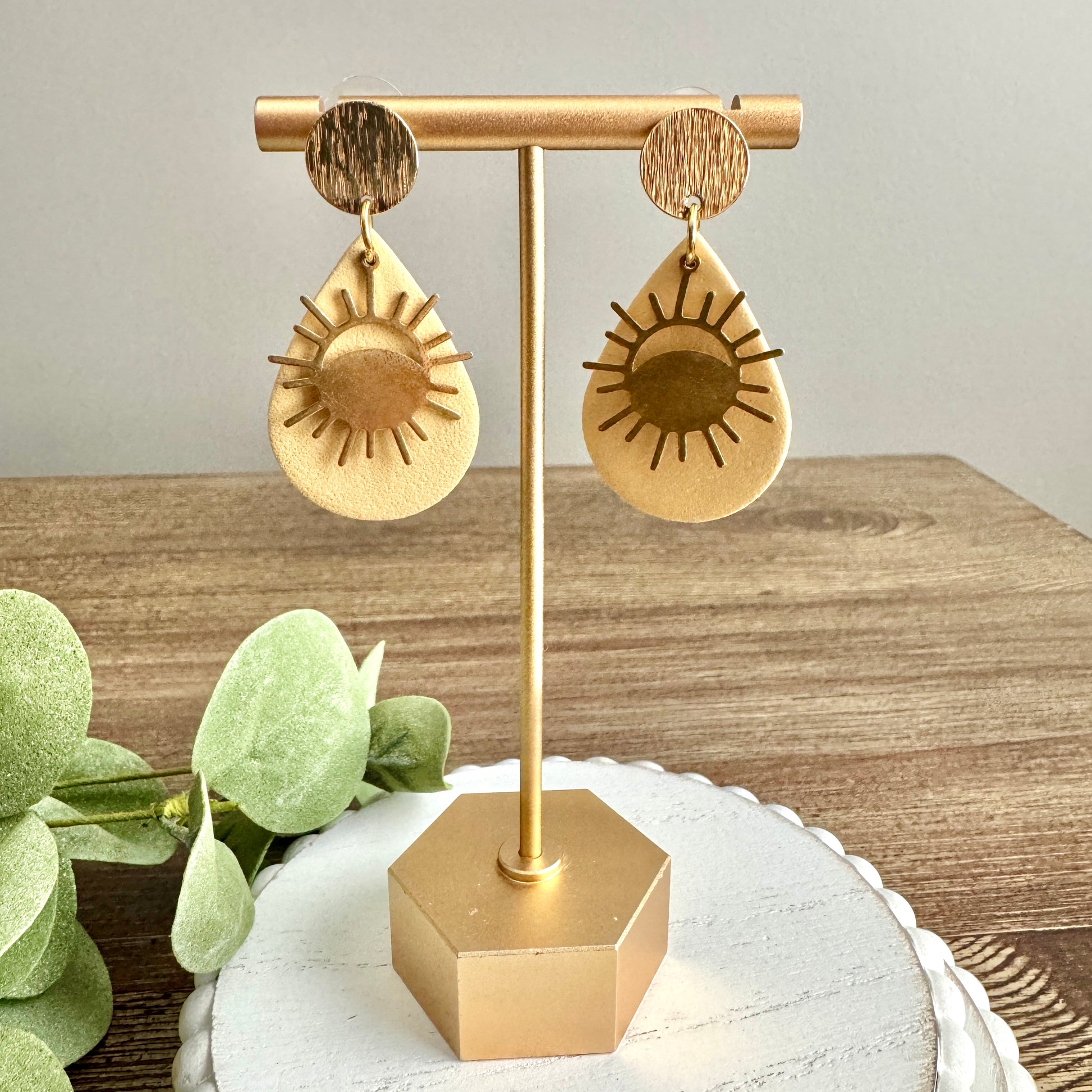 Earrings are handcrafted and are made to be sisters not twins. Earring posts are gold plated brass. Charms are Brass. Polymer Clay is very lightweight so the earrings are not heavy on your ears.