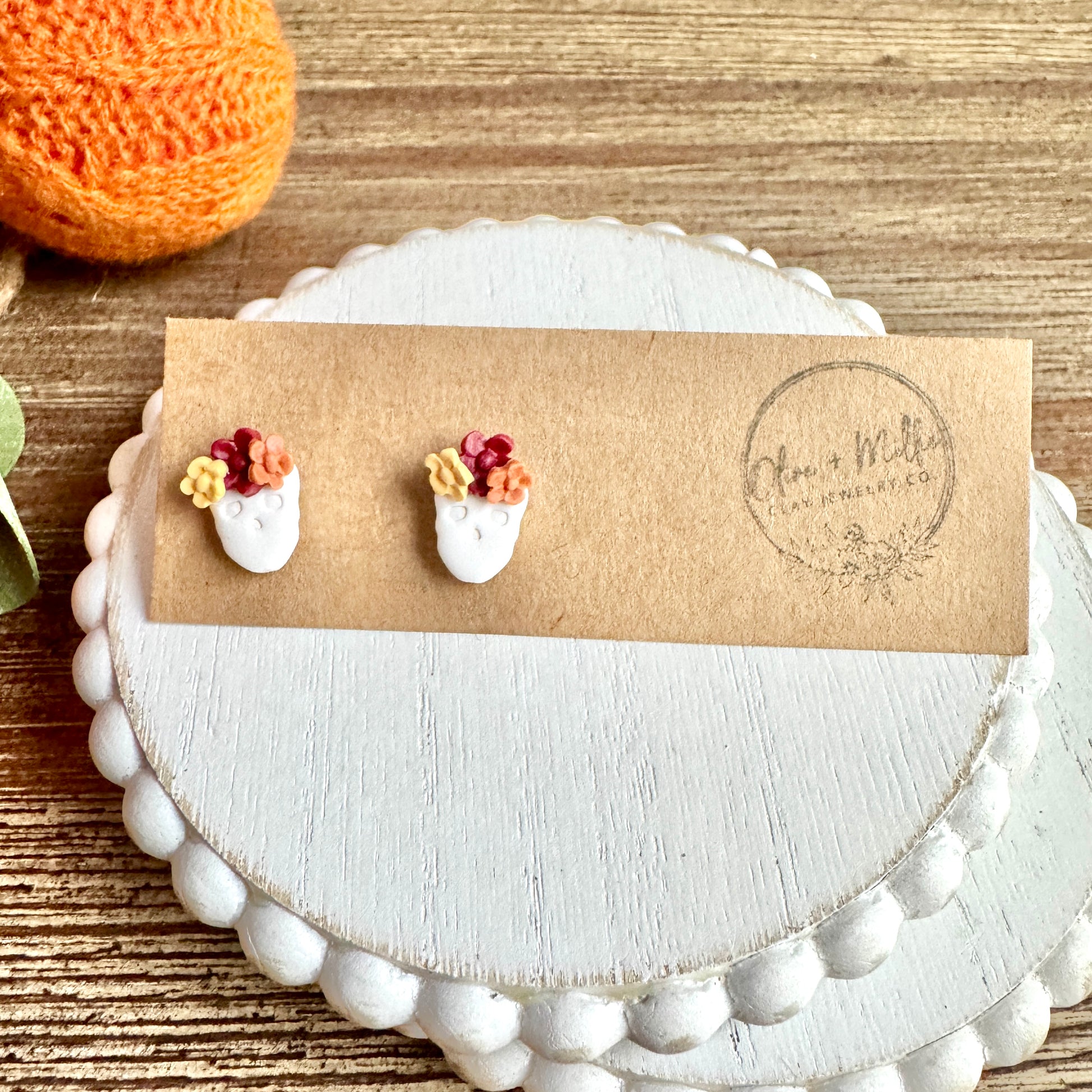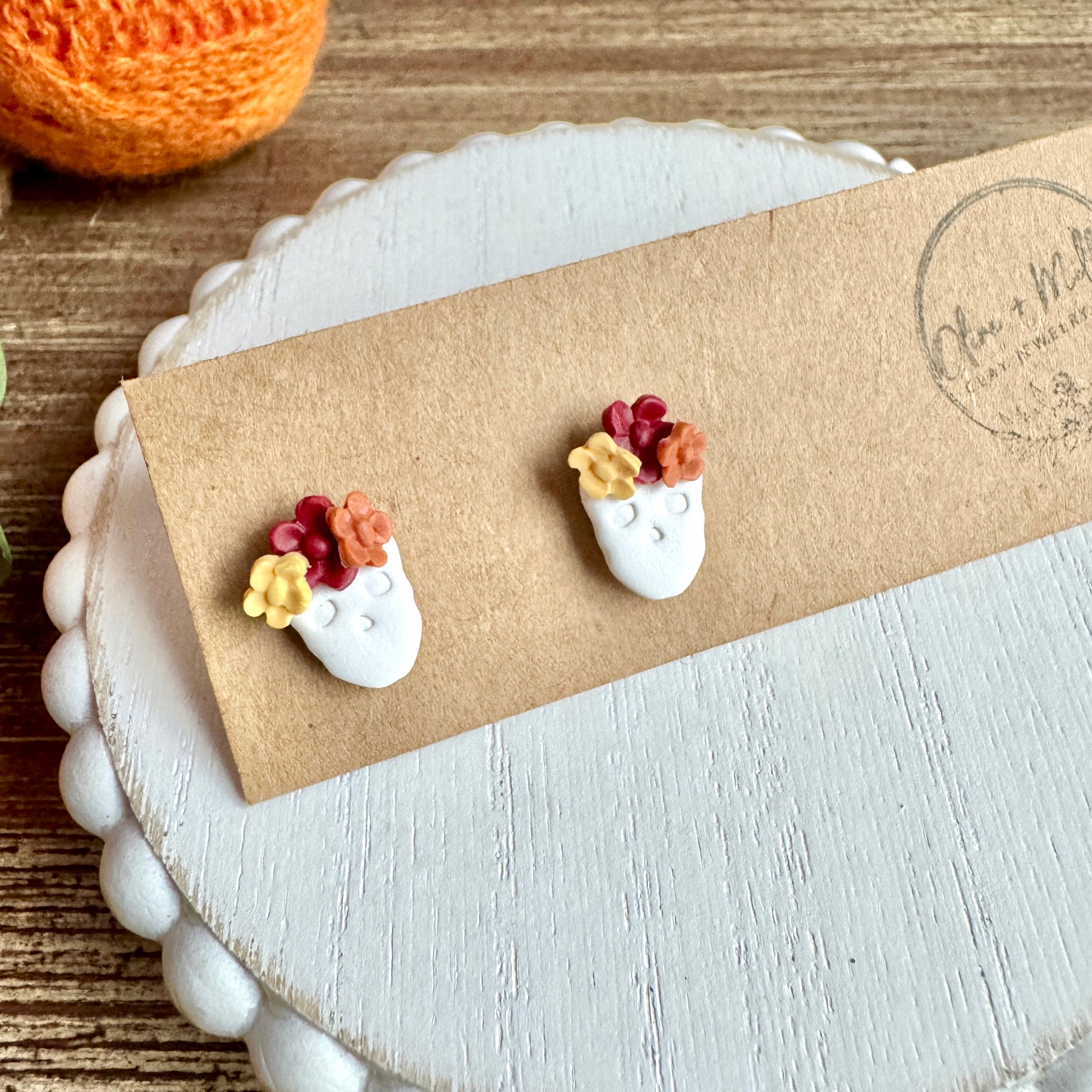 Earrings are handcrafted and are made to be sisters not twins. Earring posts are surgical stainless steel. Polymer Clay is very lightweight so the earrings are not heavy on your ears.
