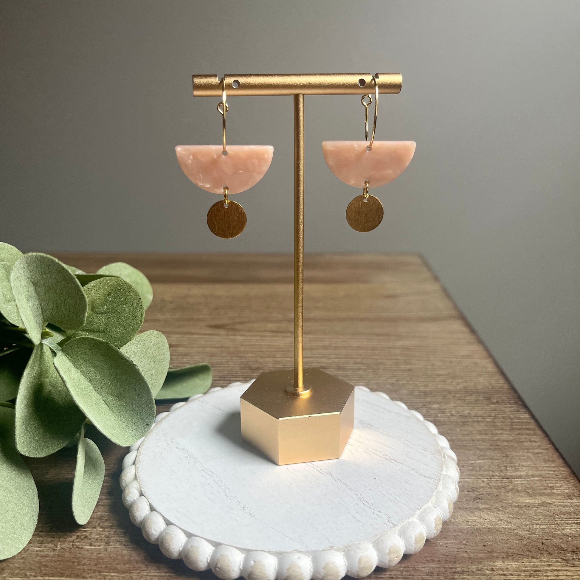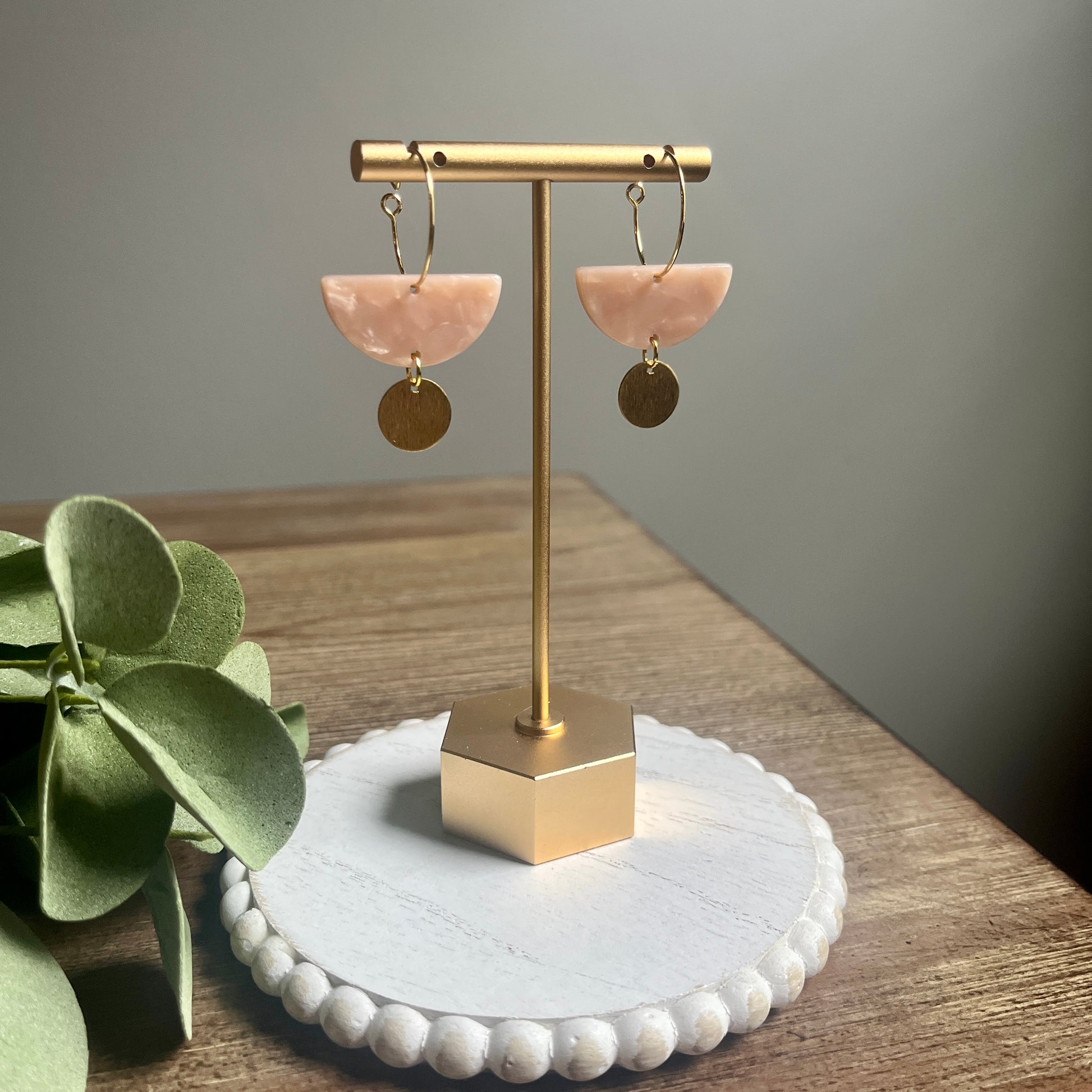 18K Gold plated Hoops with Pink Acrylic half moon and brass charms