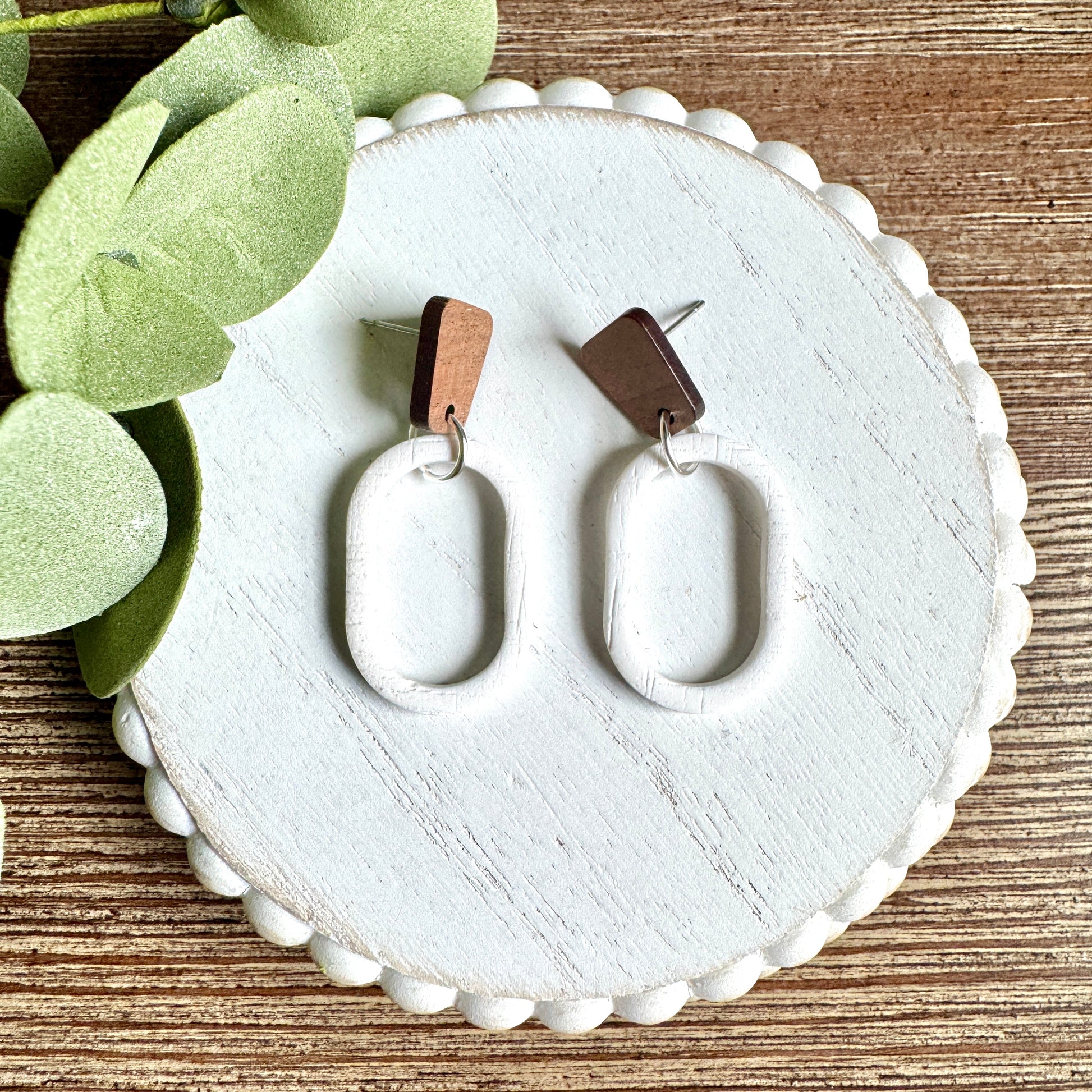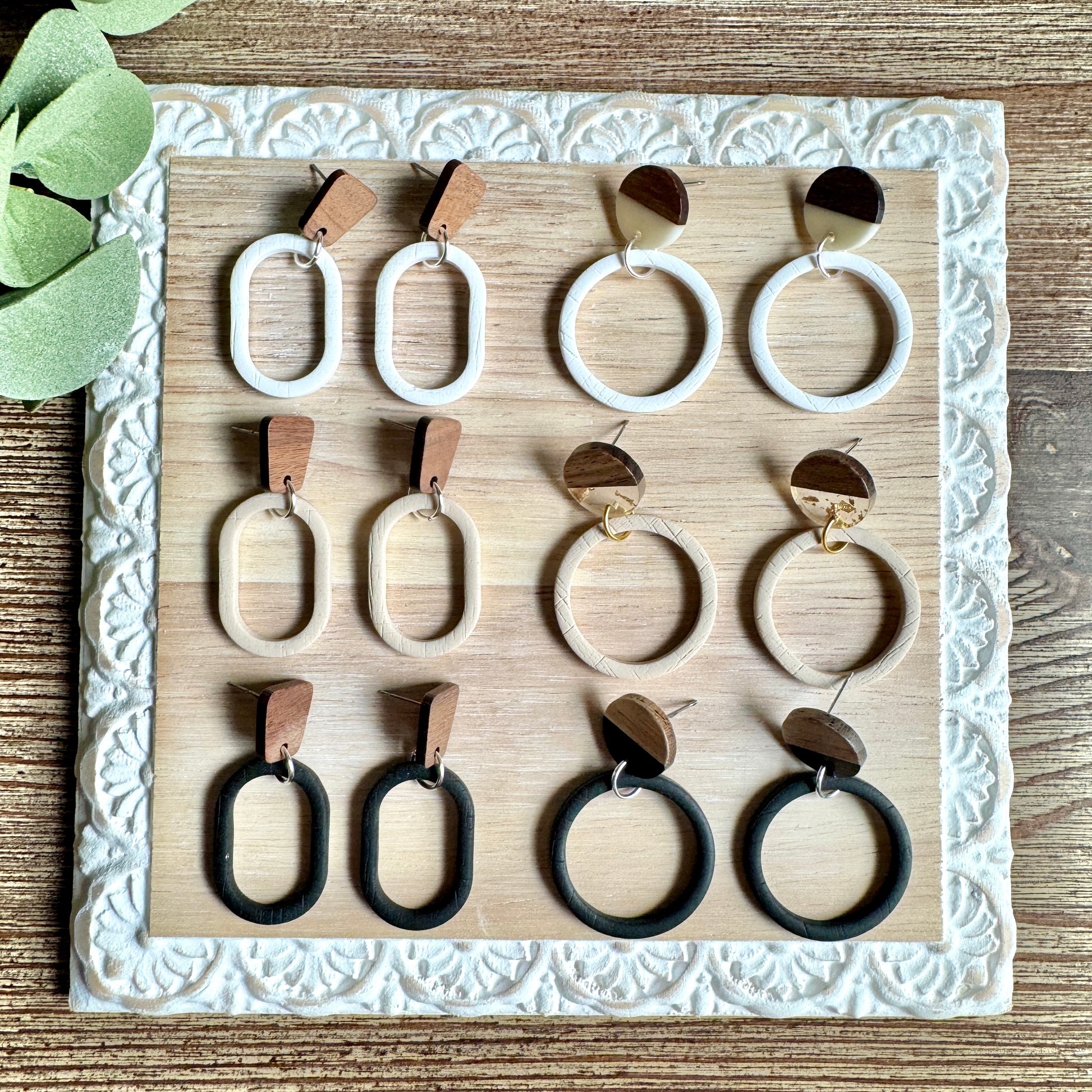 Earrings are handcrafted. Polymer Clay is very lightweight so the earrings are not heavy on your ears. Wood posts with Surgical steel base.