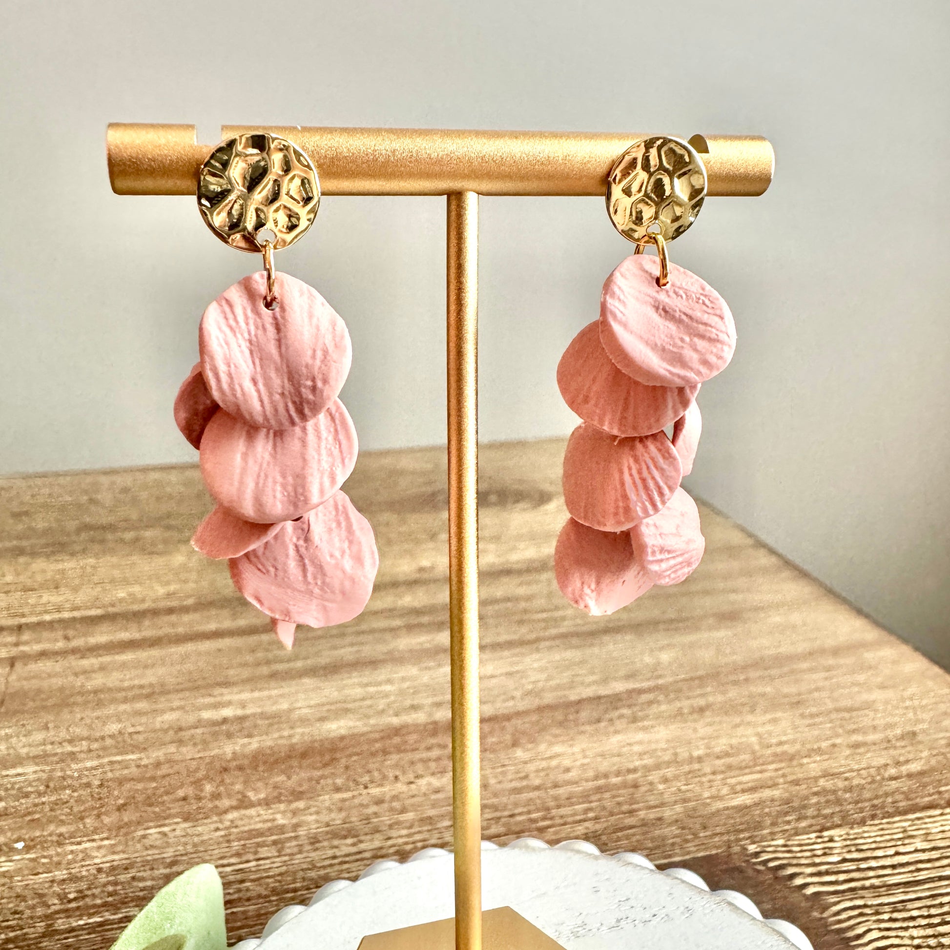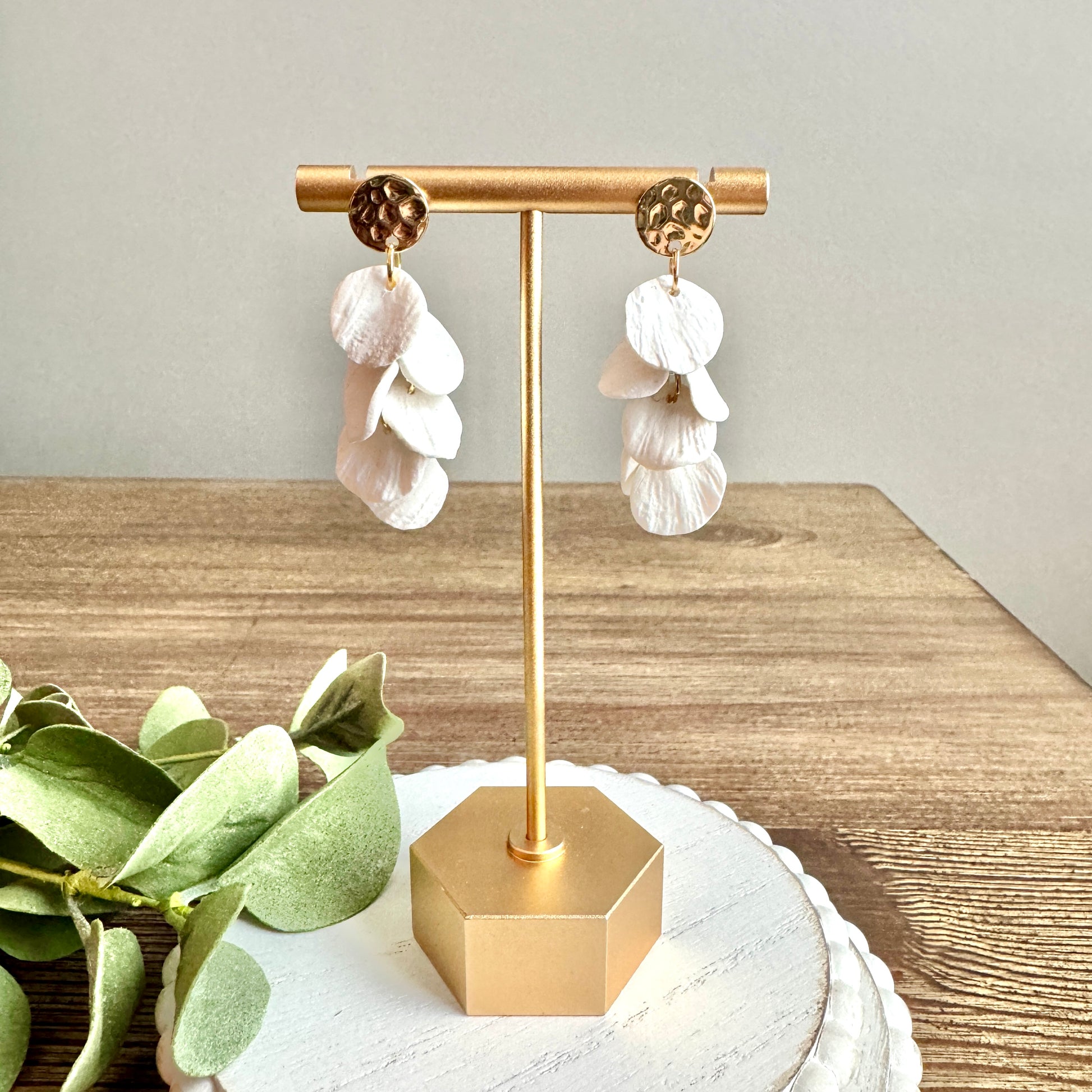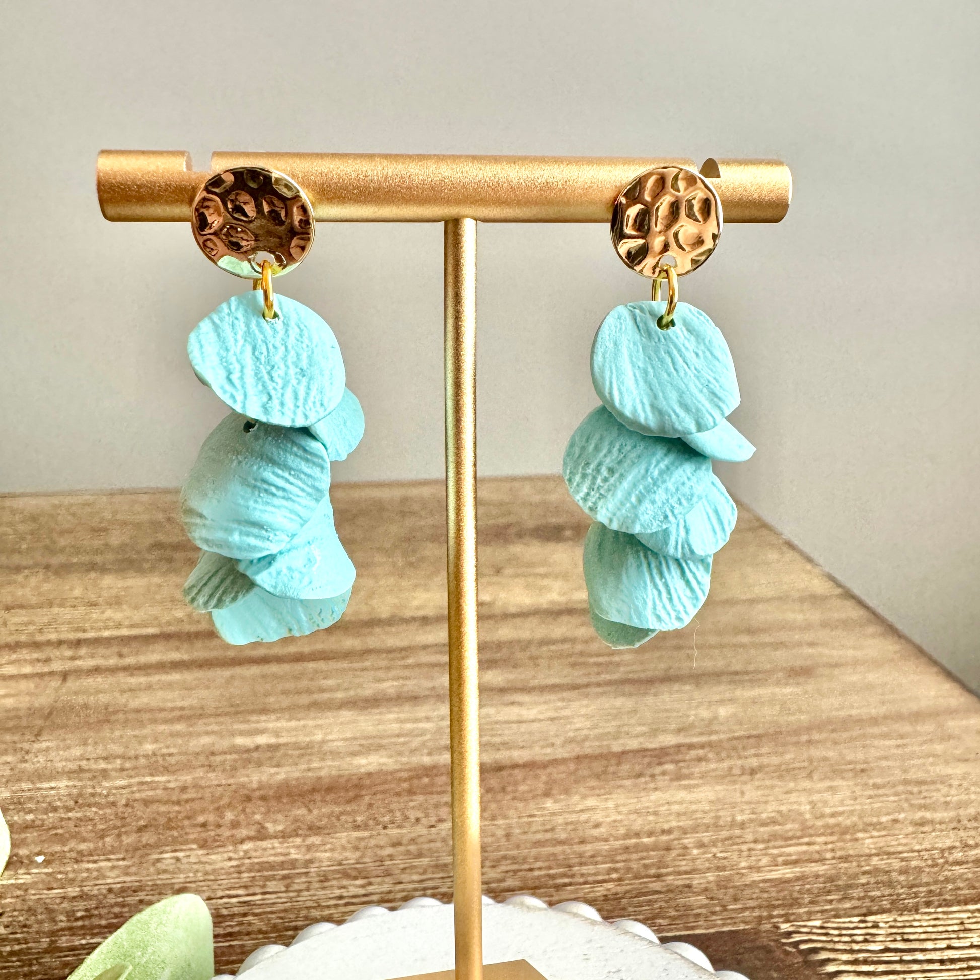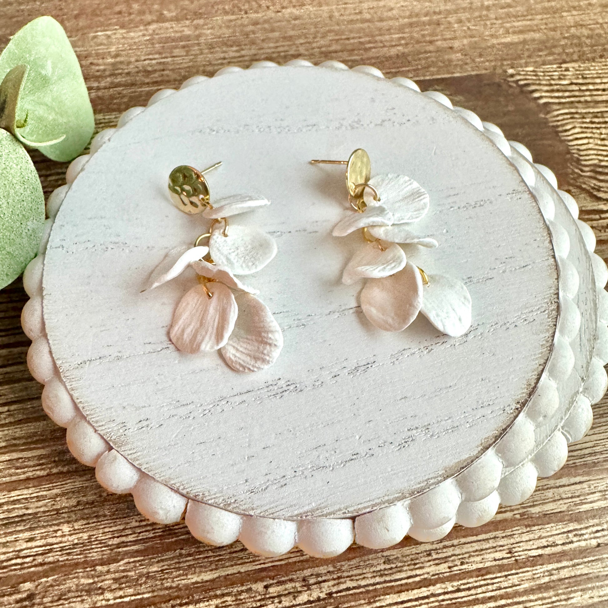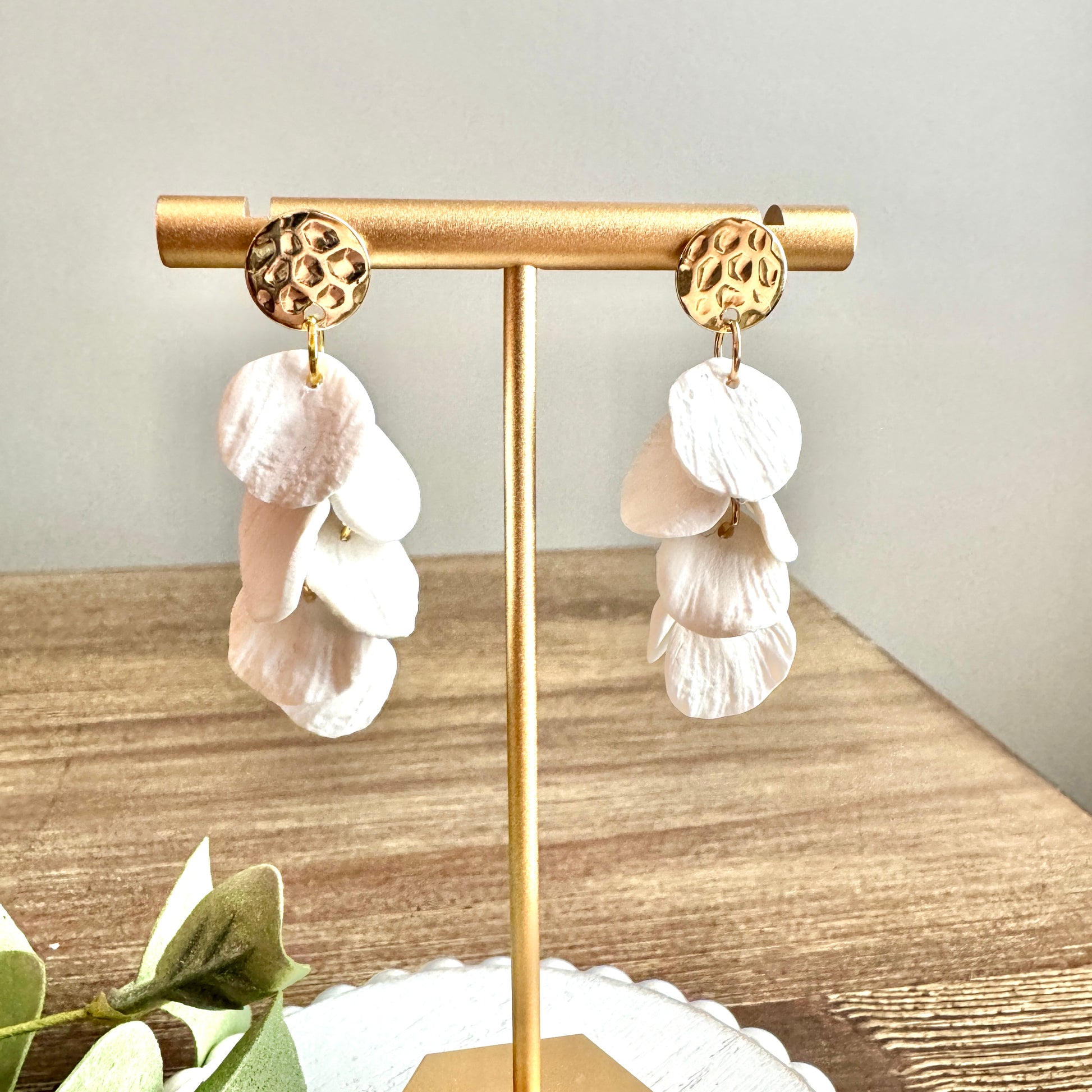 Polymer Clay Handmade Earrings to look like mini beach shells, posts are all hyper-allergenic, nickel and lead free. Hammered Gold Posts.